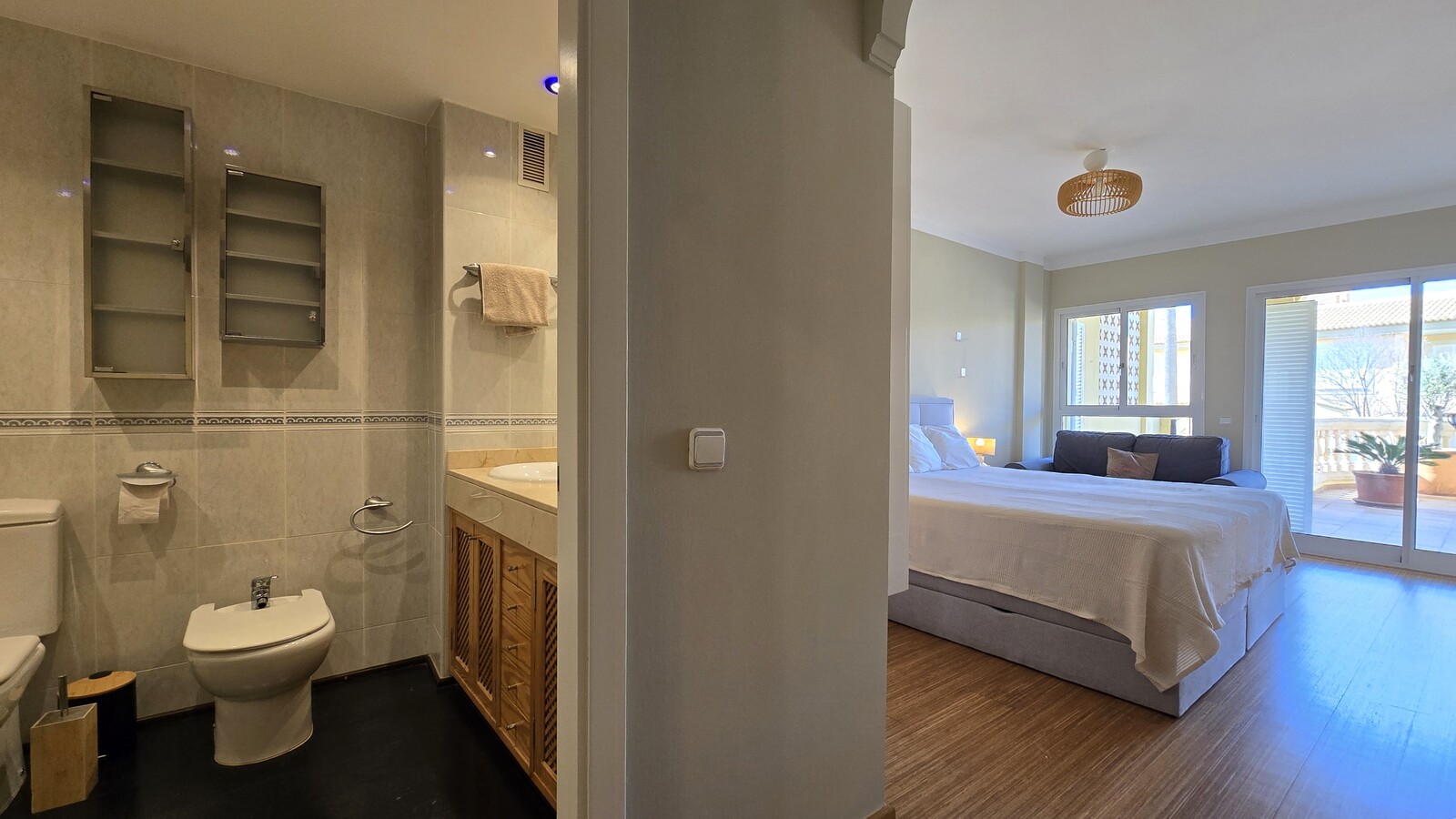 The sea-facing entrance provides direct access to a pedestrian promenade with a bike lane that connects to the S’Arenal / Playa de Palma area. From this same exit, there is direct access to the sea—undoubtedly a prime location. The small beach of Cala Mosques is only 250 m away (5 minutes walking).