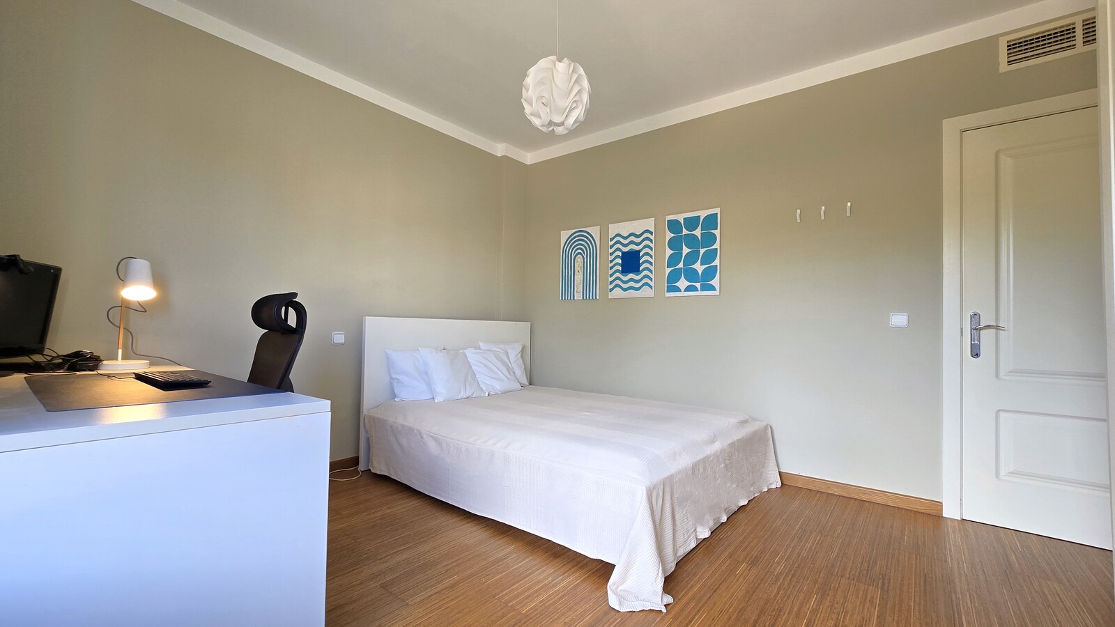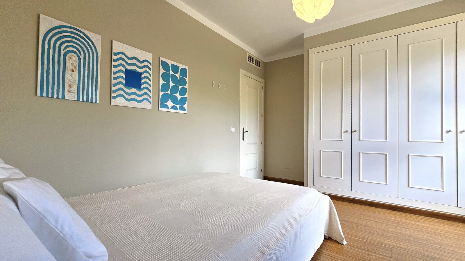 • 3 double bedrooms with built-in wardrobes. The master bedroom has a large walk-in closet and a bathroom with shower.