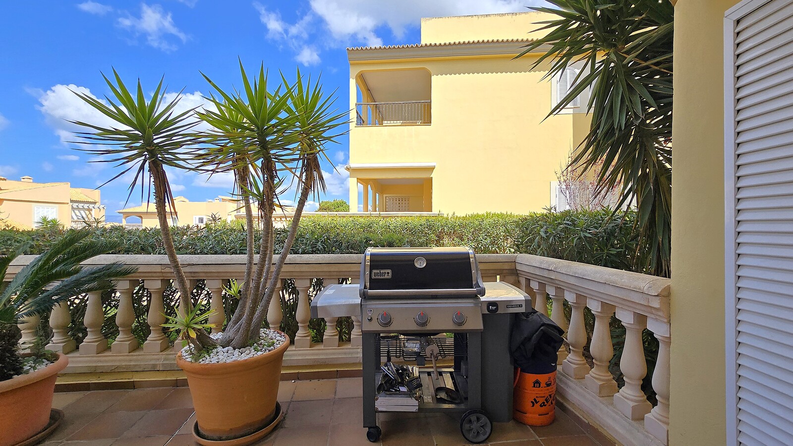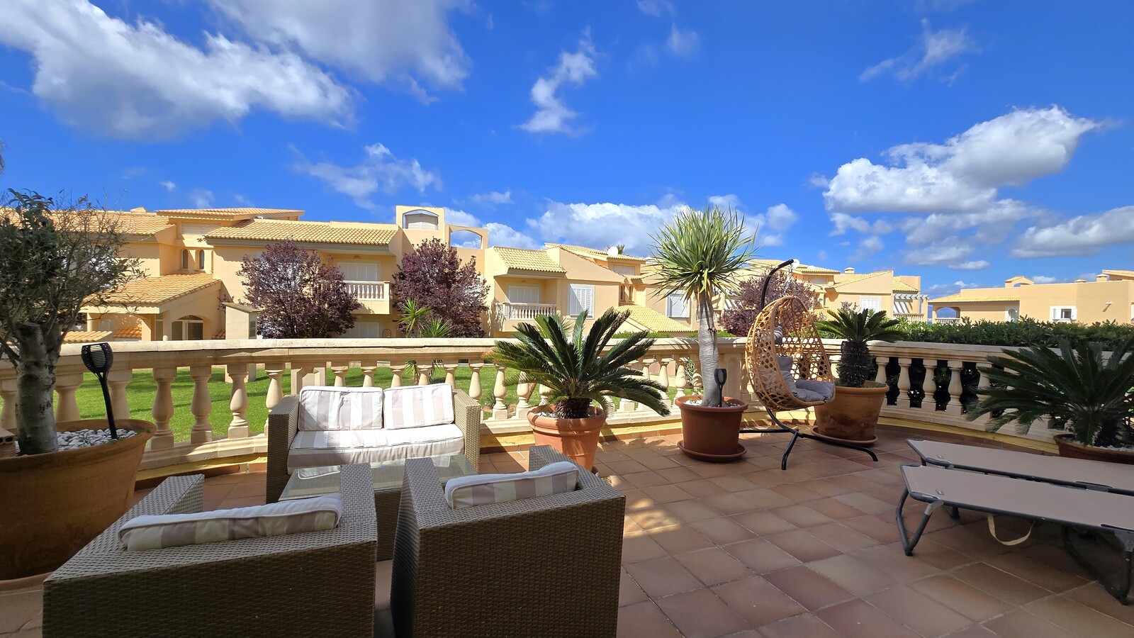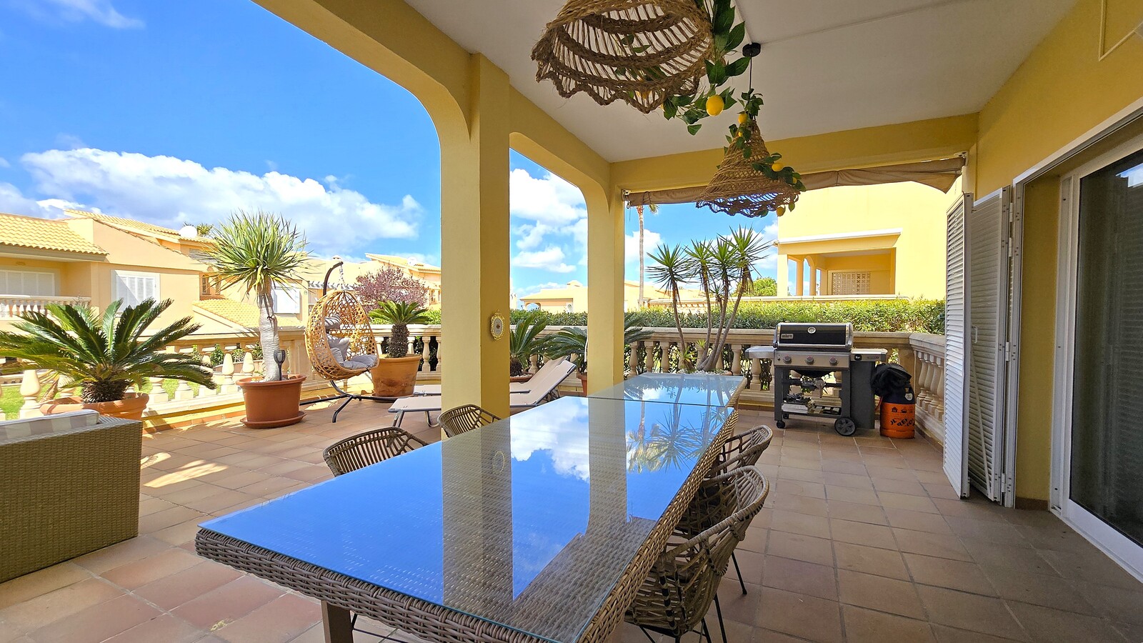 The property has a total built area of 164 m², featuring a partially covered terrace of 51 m² with awnings and a chill-out area.